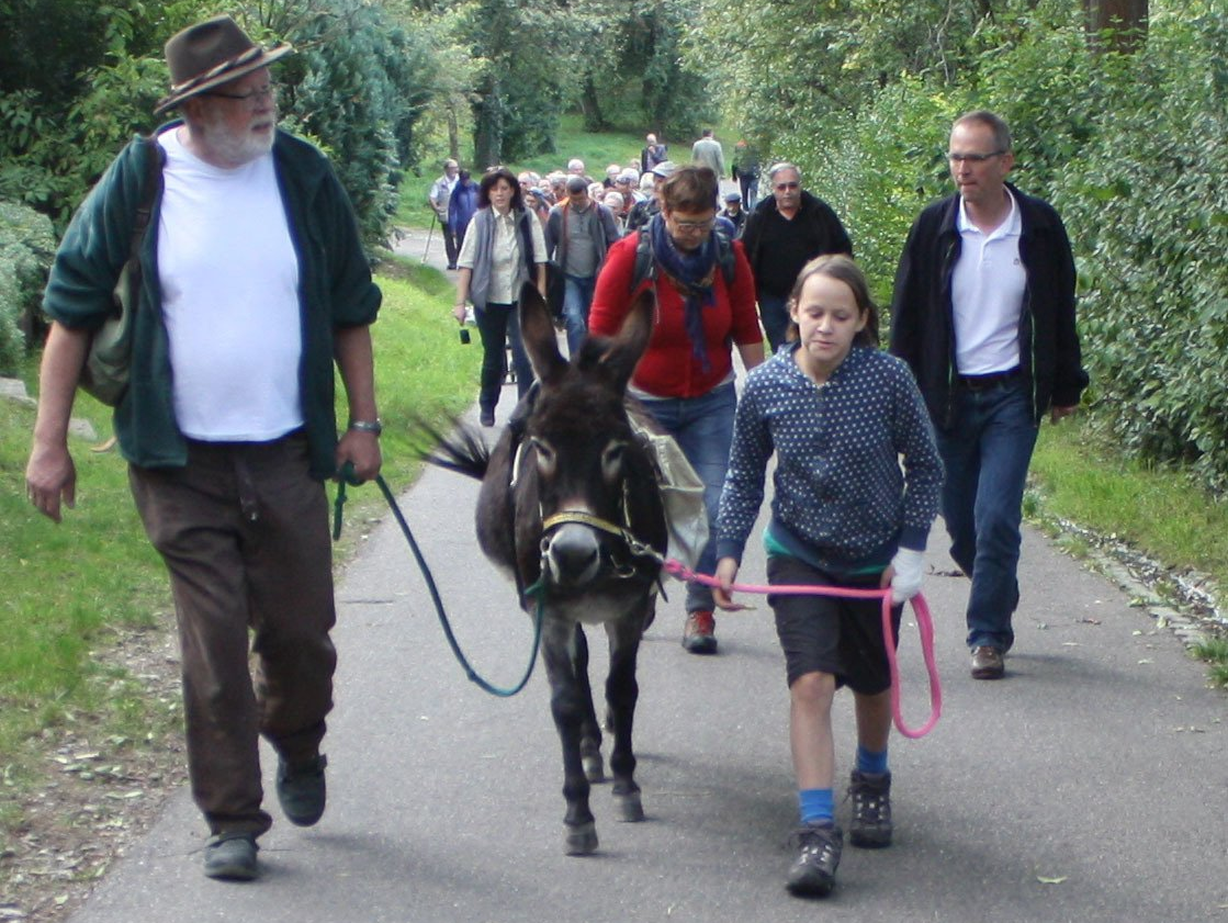 Meine "Haustrecke" startet und endet bei uns (www.stuttgarter-naturtheater.de). Sie führt über das Feuerbachtal zu den Weinbergen über dem Max-Eyth-See und verläuft größtenteils auf einer der beliebtesten Wanderstrecken dieser Region - dem Vier-Burgen-Weg. Alternativ-Touren sind meine Weinberg-Touren, Max-Eyth-See- und Ortstouren oder Wunsch-Strecken-Toure n die ich für Gruppen auch von anderen Stand-orten aus anbiete. Immer beliebt: Esel-Touren als Vereins- oder Firmen-Ausflug mit Abschluss bei uns oder woanders.